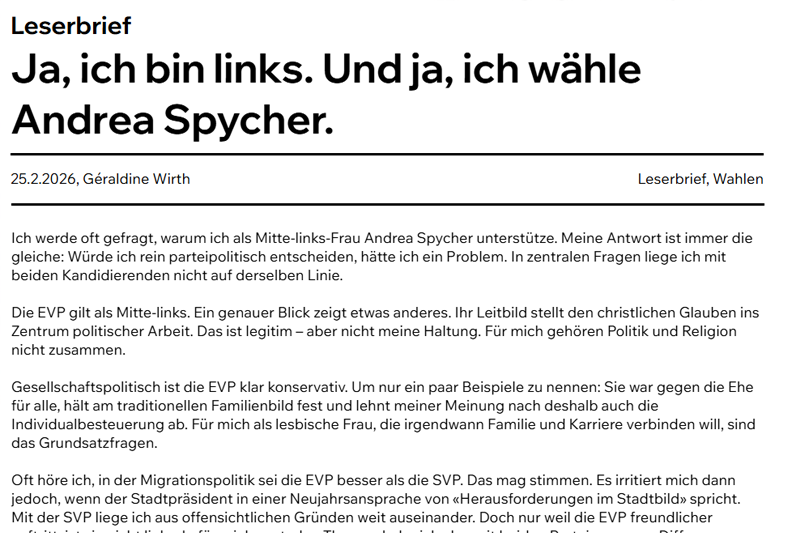 Leserbrief Géraldine Wirth vom 25.02.2026
